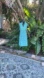 Reminiscent of that Lily Pulitzer or sale to Sable styling this pretty Tiffany blue tile print is a cotton spandex ready for summer days. Trimmed in lime green. In excellent condition.