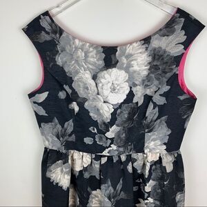 Eliza J B/W Sleeveless Black/White/Gray Floral Fit & Flare Dress Sz 14