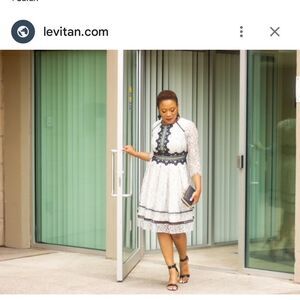 This stunning Eliza J dress is perfect for a wedding guest or cocktail event, featuring a fit and flare silhouette with a tiered skirt. The black and cream color palette is complemented by 3/4 raglan sleeves and a classic crew neck, offering a sophisticated and timeless look.size 10 excellent condition smoke free home