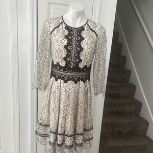 Eliza J Cream and black Lace Fit and Flare Midi Dress Size 10