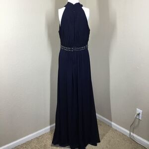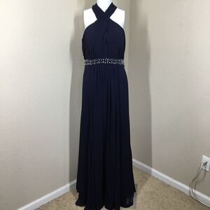 Eliza J Halter Pleated Cross Neck Gown (F15)