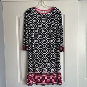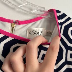 Eliza J Patterned Navy and Pink Shift Dress 12