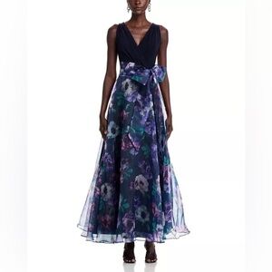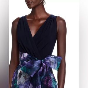 Eliza J Sleeveless Surplice Neck Mixed Media Gown