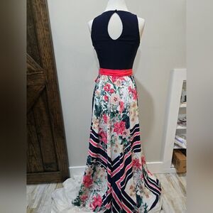 Eliza J Twofer Floral Scarf Print Maxi Dress NWOT Sz 4 Ivory-Multi