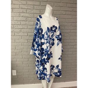 Eliza J Women White & Blue Floral Print Bell Sleeve Sheath Dress Size 20