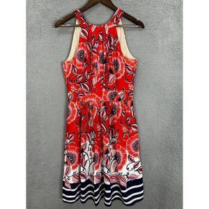 Eliza J dress womens 8 red floral abstract pleated art beach resort halter tie