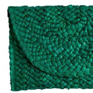 Eliza Rattan Woven Straw Clutch Emerald Green