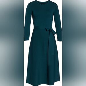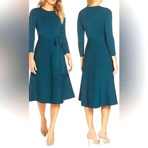 A matching tie accentuates the waist of a refined fit-and-flare dress that takes you stylishly from work to the weekend.