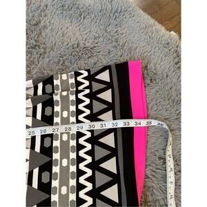 No flaws. It is a very stretchy material. Has the pink trim. Size 4