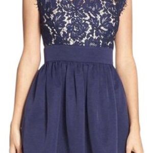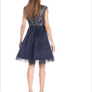 Eliza J Cap Sleeve Navy Lace Cocktail Sleeveless Fit and Flare Dress Size 8