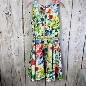 Eliza J Floral Watercolor Knee Length Dress w/ Belt Size 12 E