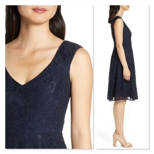 Eliza J Lace Fit & Flare Dress sz 2 in Navy. Excellent, gently used condition. Retails $148, selling for $79.