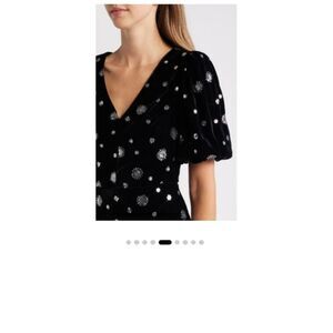 Eliza J Sequined Puff Sleeve A Line Black & Silver Velvet Dress Size 6 NWT