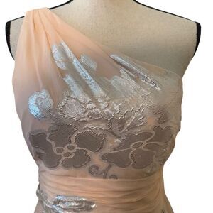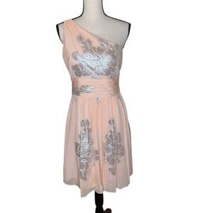 Eliza J Silk Chiffon W/Silver Foil One Shoulder Dress Sz 6 Cocktail, Wedding