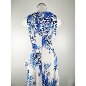 Eliza J Sz 4 Floral Print Ruffle Sleeveless Midi Cocktail Dress Elegant. Condition is Pre-owned - Excellent.
