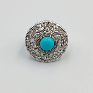 Elizabeth Adams Sterling Silver 925 Turquoise Diamond Accents Ornate Ring Sz 8
