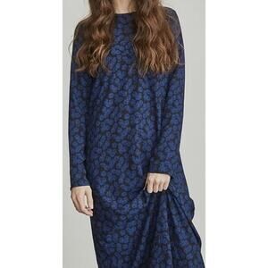 Elizabeth And James Blue Black Floral Long Sleeves Maxi Dress Size Small