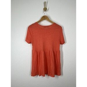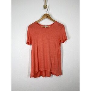In good condition with no flaws. Elizabeth and James coral top size small. Short sleeves with a peplum like back. Material is 100% linen but material tag has been cut out.