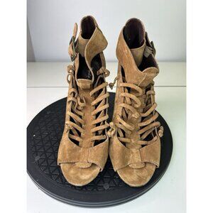 Elizabeth And James Gladiator Heel Women's 8.5B Brown Leather Cut Out Ultra High