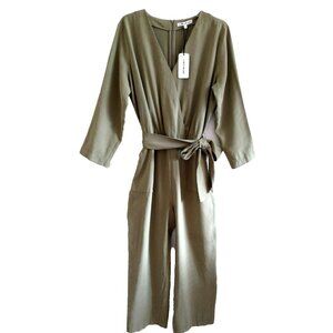 Elizabeth And James Olive Green Jumpsuit Drop Shoulder Pockets Belt - Large NWT
