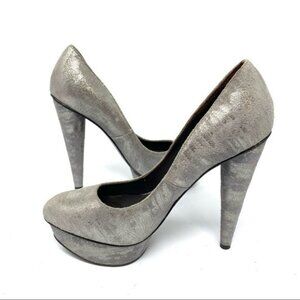 izabeth & James silver metallic platform heels “Mason”. Heel is 5'' and 1'' platform.