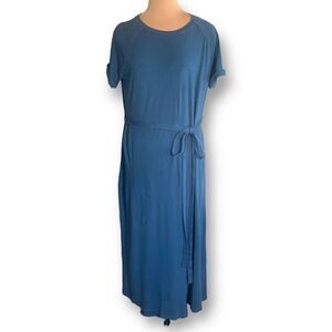 Elizabeth And James Welles Dress Cornflower Blue Faux Wrap Round Neck Maxi