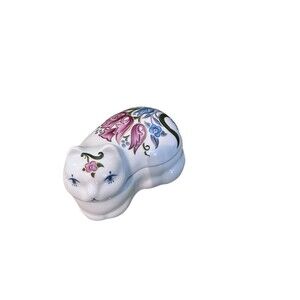 Elizabeth Arden Floral Painted Cat Trinket Box Made in Japan