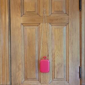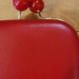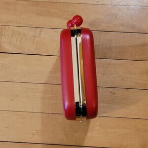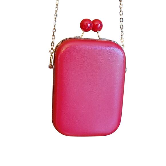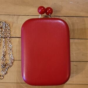 Elizabeth Arden Red Hardshell Structured Kisslock Purse Gold Toned Chain