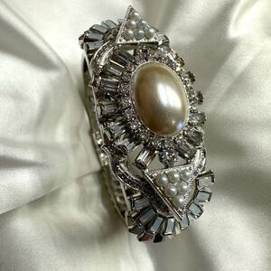 Elizabeth Cole Statement Bracelet – Vintage Glamour & Elegance Silver and Pearl