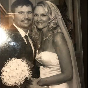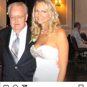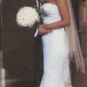 Gorgeous diamond white , satin strapless wedding dress with French bustle. Worn once then had cleaned immediately still in box from cleaners. Perfect condition. More pics to come.. bought at vows and tailored by Anahit in Newton . She is amazing! No damage at all . I am 5’9” tall perfect sized!