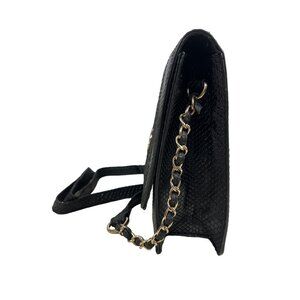 Elizabeth Grant Black Crossbody Purse Python Print Gold Chain Strap Sz S - NWOT