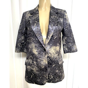 Elizabeth & James Blazer Jacket Gray Metallic Short Sleeve One Button Ja…