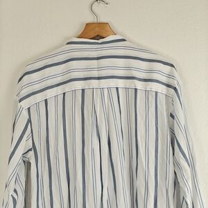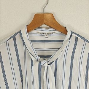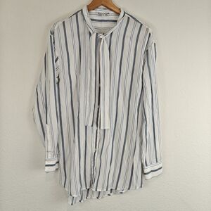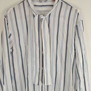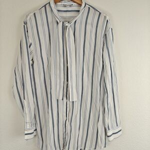 Elizabeth & James Blue White Striped Neck Tie Button Down Long Sleeve Shirt M