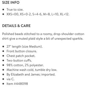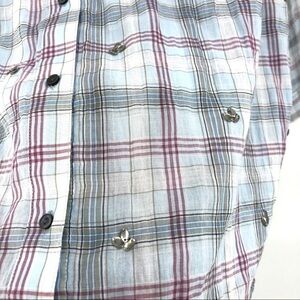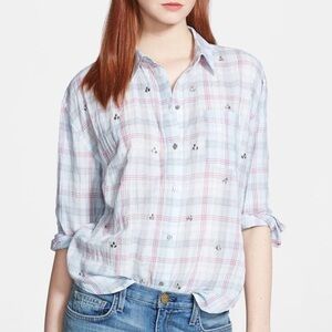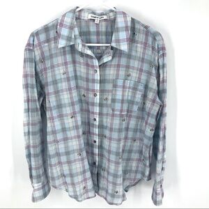 Elizabeth & James Carine Shirt Flannel Top Embellished Beaded Blue Size Small
