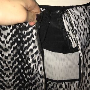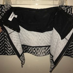 (Elizabeth & James) 'Addilyn' Cropped Black & White Printed Strapless Top. Shorter front hem, internal mesh insert. Hook and zip fastening at back. Length: 10.5. Bust: 29. Runs true to size. In excellent condition. Size XS.