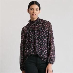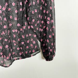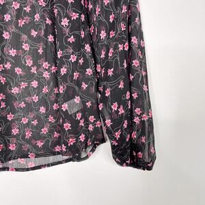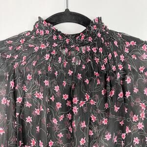 Elizabeth & James Floral Sheer Smocked Top XSmall Black Pink Long Sleeve Blouse
