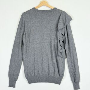 Elizabeth & James Grey Ruffle Long Sleeve Cashmere Blend Sweater Women's Small