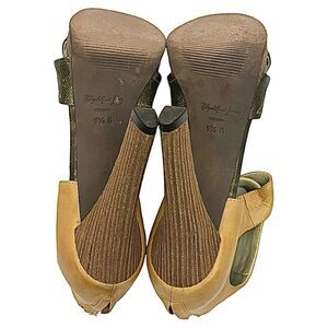Elizabeth & James Ladies Leather Green Tan Color Platform Sandal Size 9.5 B Nice
