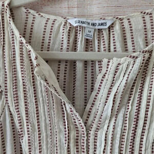 Elizabeth & James Size Medium Peasant Blouse Ivory Red Boho Ruffle Pintuck Top