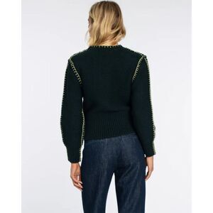 Stay cozy and stylish with this elegant emerald green Elizabeth & James sweater. Cinched cuffs and waistline with contrast lime green quilt stitching detail. Excellent condition