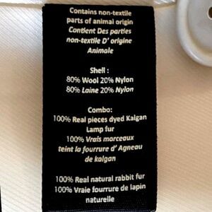 Elizabeth & James White Wool Jacket w/Kalgan Lamb & Rabbit Fur. Size XS.