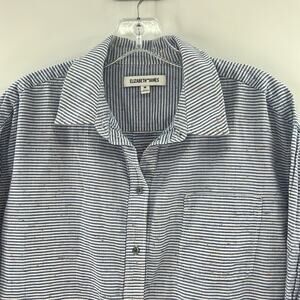 Elizabeth & James Women's Stripe Button Front Long Sleeve Shirt - Blue/White - M