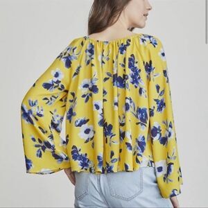 Elizabeth & James Yellow Floral Peasant Top Size Medium