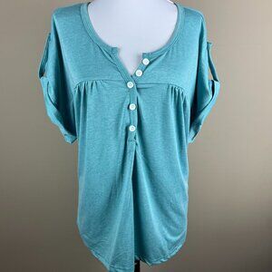 Elizabeth Kelly NWT Short Sleeve Blouse Plus Size 2XL Green, V-neck