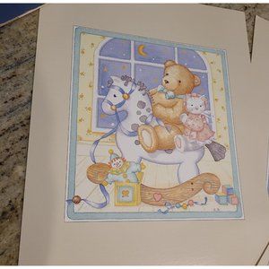 Vintage 1993 Elizabeth King Brownd Decorative Prints Children's Room Set of 6. Cat Bear Bunny Panda Elephant Giraffe