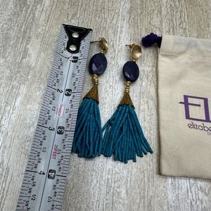 Elizabeth Lanier Turquoise Beaded Dangle Fringe Tassel Earrings Squash Blossom