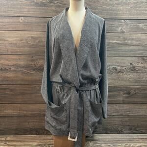 Elizabeth Liz Claiborne Black White Soft Unlined Belted Jacket SZ 18 C101846