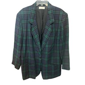 Elizabeth Liz Claiborne Blazer 20 Black Watch Plaid Wool Sport Coat Vintage