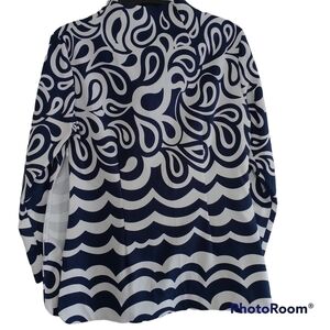 Elizabeth McCay Navy White Graphic Print Blouse V Neck 6