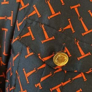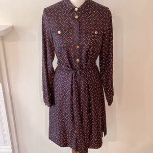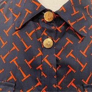 Beautiful Elizabeth McKay silk shirt-dress featuring a stylish equestrian horse bit design. 100% Silk exterior for a luxurious, buttery soft feel.